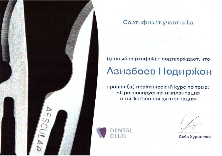 Нодиржон Суннаттуллоевич обладает очень важными качествами для стоматолога хирурга, таким как, уверенность и решительность в проведении операции любой сложности!!!