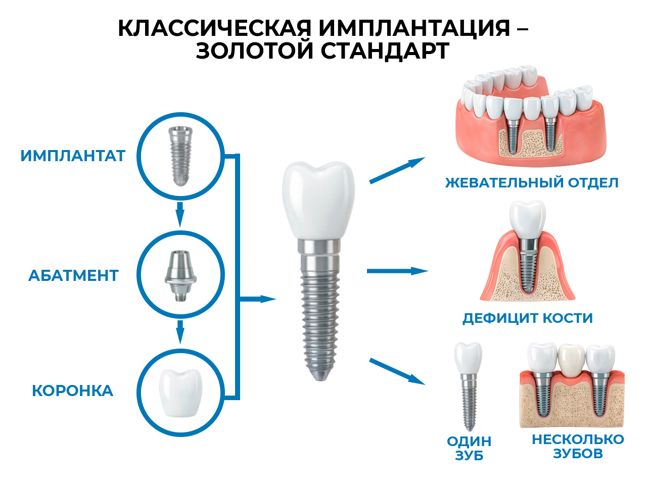 Классическая имплантация — это самый современный, надежный и физиологичный способ восстановить утраченный зуб, вернув красоту улыбки и полноценную функцию жевания.